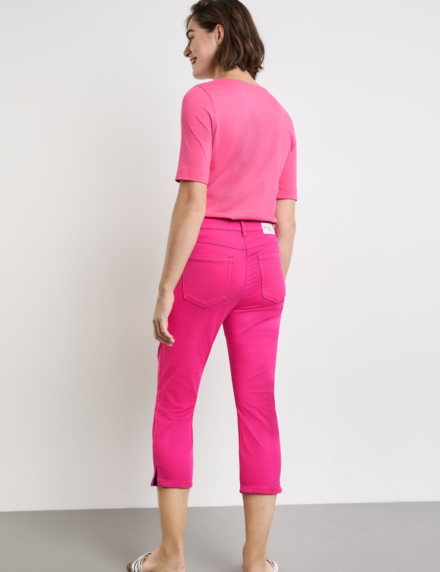 Our Best4me Capris with their unique power stretch fabric are the perfect choice for fashionable outfits, even on warm days. Made from a horizontal stretch fabric blend, these trousers promise exceptional comfort and a perfect fit. The side hem slits and waistband with contrasting stripes add a relaxed touch to this trendy piece. Perfect for clean looks as well as sporty, casual attire.