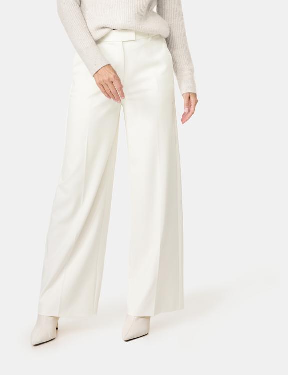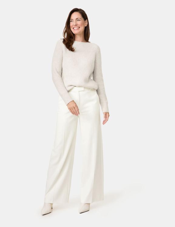 These Gerry Weber Cream Wide Leg Trousers s not only make a bold fashion statement, but also ensure superior comfort with their excellent stretch and freedom of movement. The timeless pressed pleats add elegance to the silhouette, making them the ideal choice for any occasion. The sustainable fabric showcases your environmentally conscious style and provides all-day comfort.