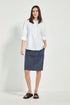 Knee-length Skirt with fly front side and back pockets. Elasticated waist through the back. Made in our exclusive European lightweight stretch cotton Acrobat fabric for comfort, breathability, and easy care.