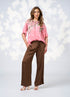 Relaxed fit raglan blouse with floaty sleeves, featuring a tie neckline and ruffled collar.