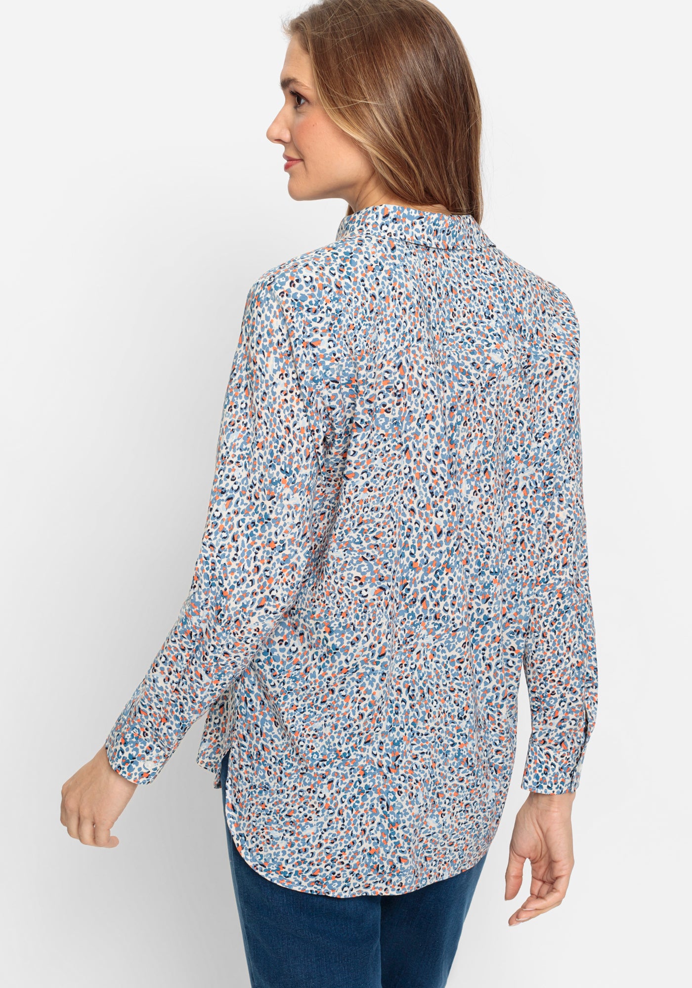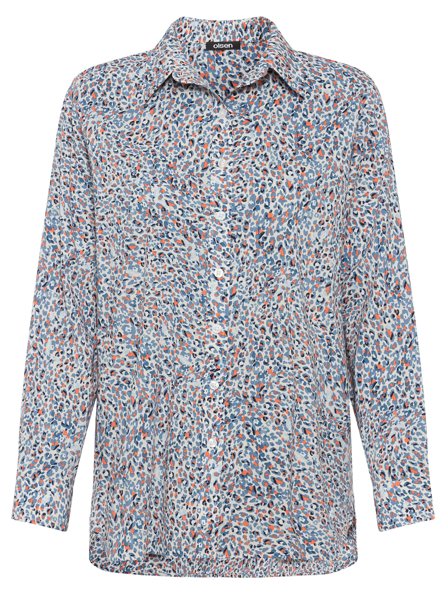 This classic shirt is elevated with an allover animal print pattern for a modern touch. Featuring traditional shirt styling, it includes a turned-down collar, center button front closure, and cuffs for a timeless look. Made from lightweight viscose, it offers an airy feel and a lovely drape.