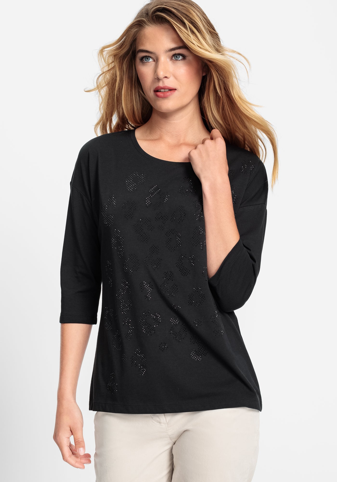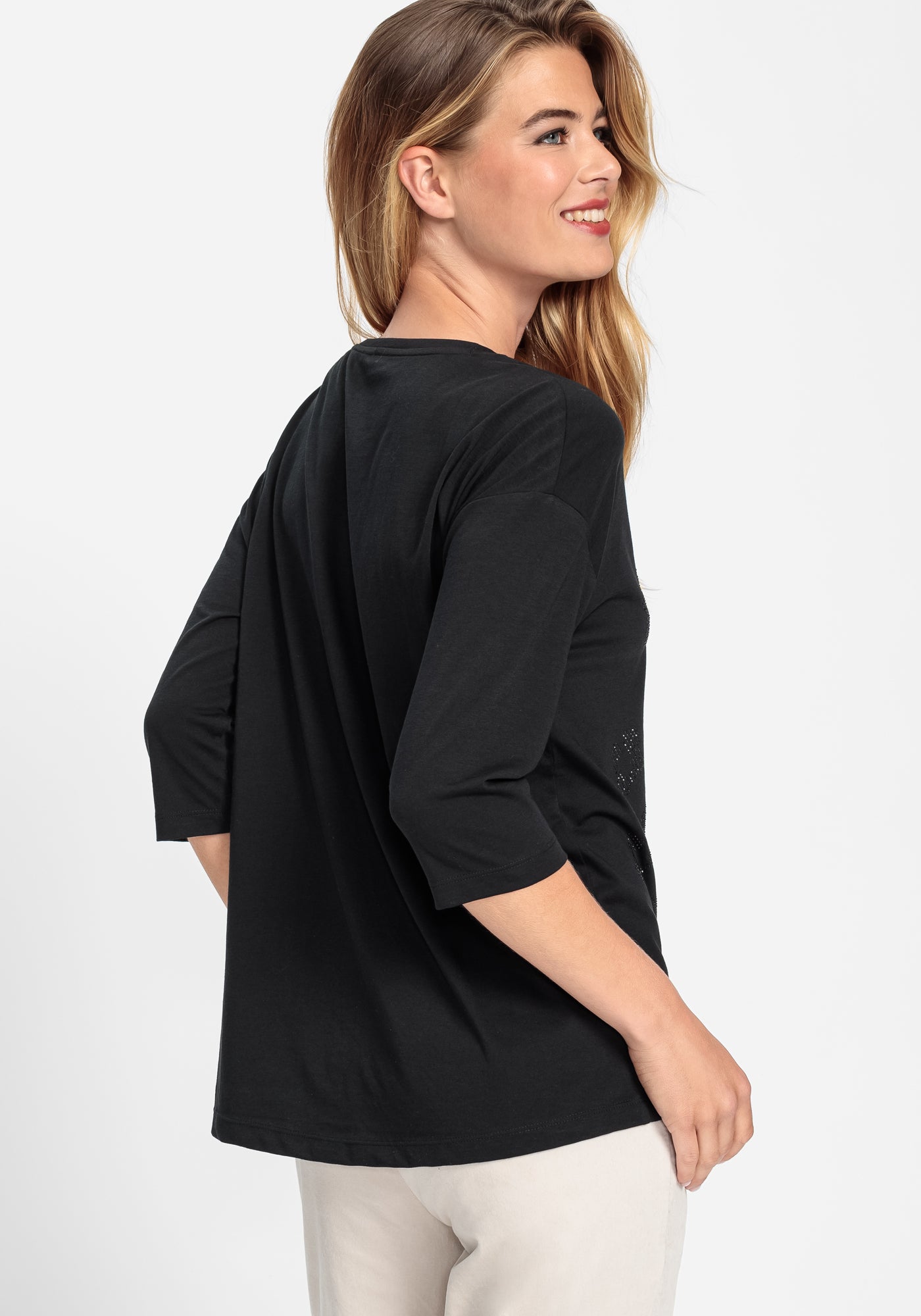 Add a little sparkle into your winter wardrobe with this lovely top from Olsen. Featuring a 3/4 sleeve and Black crystal detail on the front.