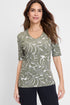 This V-neck T-shirt combines feminine elegance with a natural look. The 1/3-length sleeves and tailored cut flatter the silhouette, while the all-over leaf print adds a fresh and vibrant touch. Crafted from pure cotton, it promises a comfortable fit and maximum skin-friendliness. Length: 62 cm.
