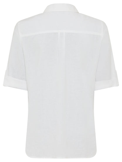 · With shirt collar · With two breast pockets · With roll-up 1/3 sleeves, fixable with tab and button