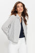 This trendy shirt-collar blouse is a versatile wardrobe essential. Its fashionable cropped style can also be worn as a lightweight jacket. The full-length button placket and timeless striped pattern give it an elegant look. The long, roll-up sleeves with button closures allow for flexible styling options. Crafted from cotton, polyester, and elastane, the blouse offers comfortable wear and a slight stretch. Perfect for business looks and casual outfits. Length approx. 58 cm.